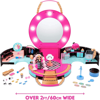 Unlock 50 surprises in the first game set designed for L.O.L. Surprise. Dolls with real hair - surprise L.O.L. Hair Salon Includes:- Hair salon, fashion wardrobe, retractable runway, mirror with work lights, hair shine and chalk and more. L.O.L. includes an exclusive surprise. JK mini fashion doll, brim, with real hair, real fashion and real boots. For you and your doll. A real work mirror has lights that become a nightstand for you. It also includes hair shine and hair chalk for you and your doll. Style the doll's hair - wash it in the sink that really sprays water, then clean and style it with the included accessories and show new patterns on the retractable runway. When you're done playing, fold the playset into a nice wallet to take on the go.
